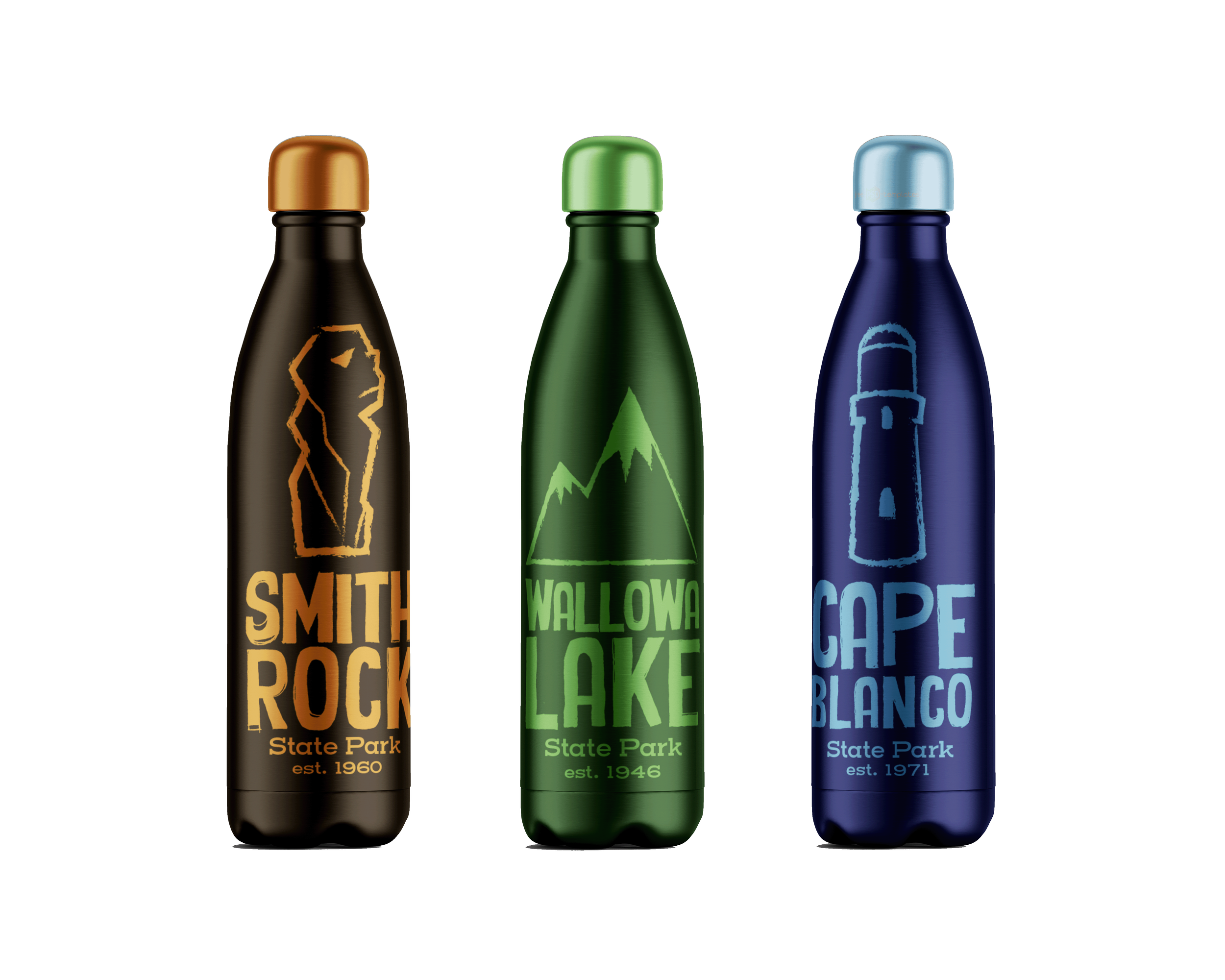 Research and develop logos for three parks within a specific state park system in the United States, ensure they create a cohesive set.